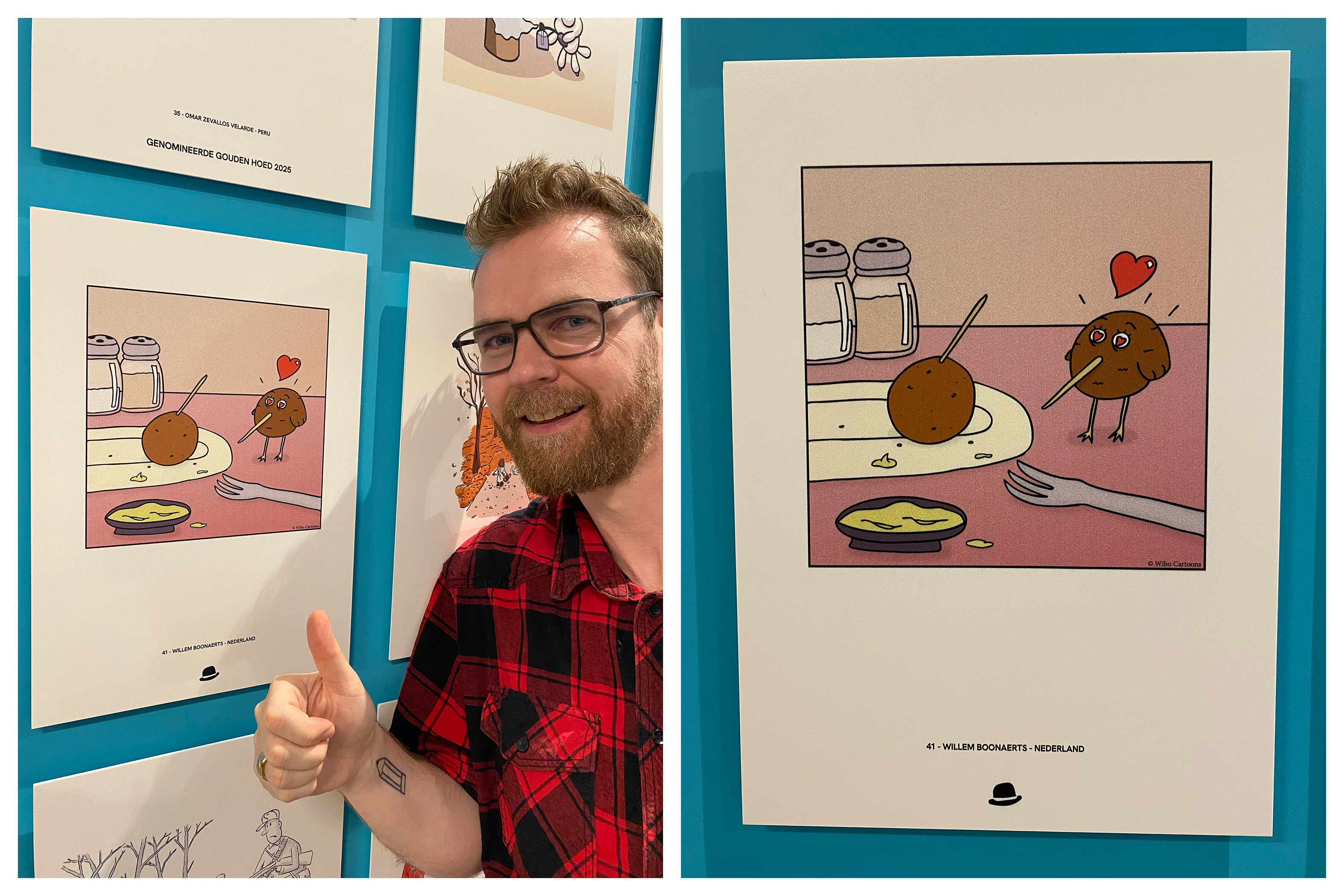 3 augustus 2025Een van mijn ingezonden cartoons is geselecteerd voor het Internationaal Cartoonfestival Knokke-Heist. Erg leuk om je eigen werk daar te zien hangen. Het festival is van 28 juni tot en met 24 augustus.